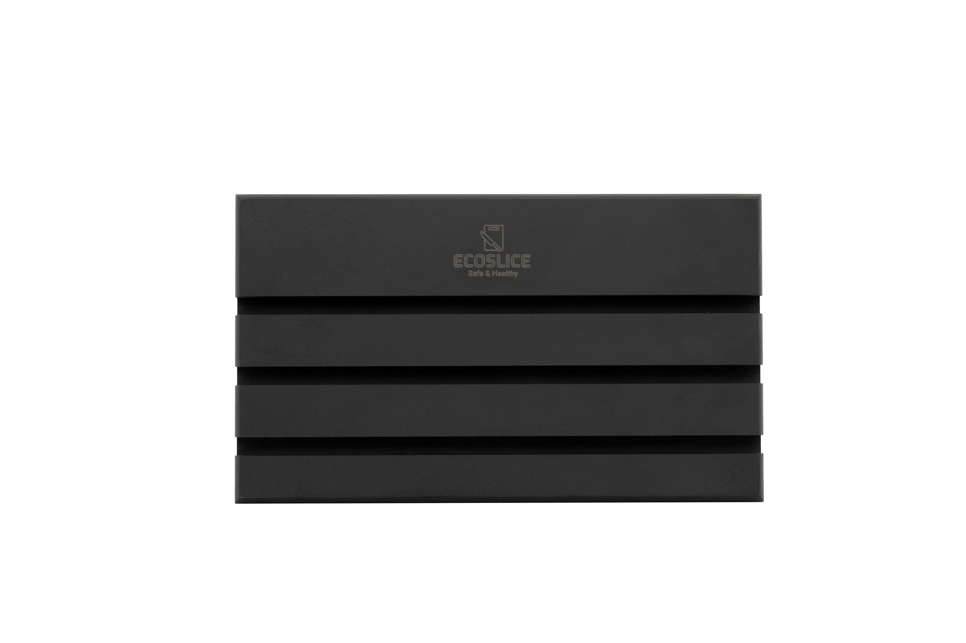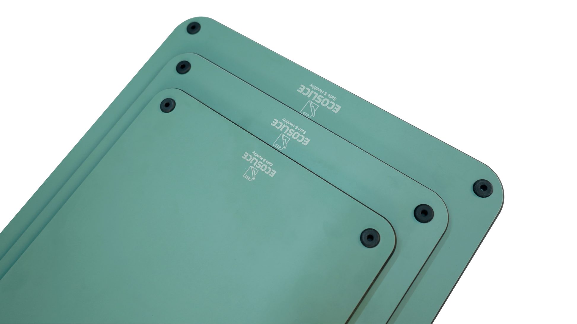 EcoSlice snijplanken zijn gemaakt van hoogwaardig composietmateriaal, bestaande uit 20% LFGB-gecertificeerde voedselveilige hars en 80% formaldehydevrije dennenhoutvezel, wat zorgt voor veiligheid en duurzaamheid. Een veilig en duurzaam materiaal zonder PFAS en BPA. Een snijplank met optimaal gebruiksgemak, zoals wordt bevestigd in gebruikerstests. Niet gevoelig voor schimmel of scheuren, vaatwasserbestendig en beschermend voor de messen.