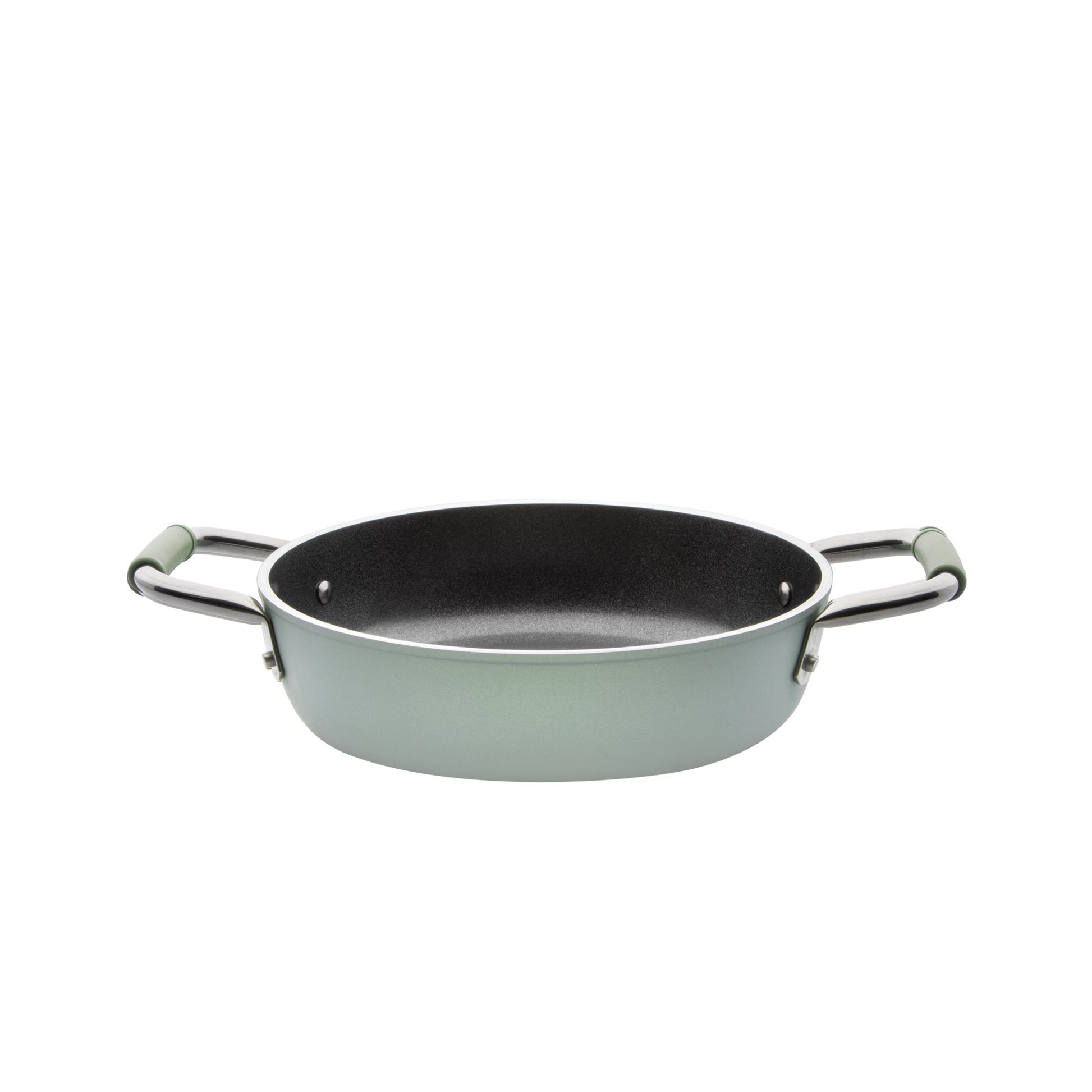Door zijn hoge, rechte randen is de braadpan / hapjespan met een diameter van 24 cm ideaal voor het veilig bakken en braden van vlees en vis, maar ook voor het bereiden van pastasauzen en één-pansgerechten zoals macaroni en stoofschotels. Het ene moment een braadpan, het andere moment een hapjespan of stoofpan. Maar vergeet niet zijn kwaliteit als risottopan. Het grote bodemoppervlak in combinatie met de lage rechtopstaande randen maakt deze pan bij uitstek geschikt voor het bereiden van een heerlijke Italiaanse risotto. Een alleskunner dus!