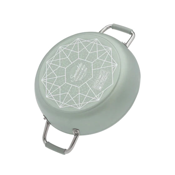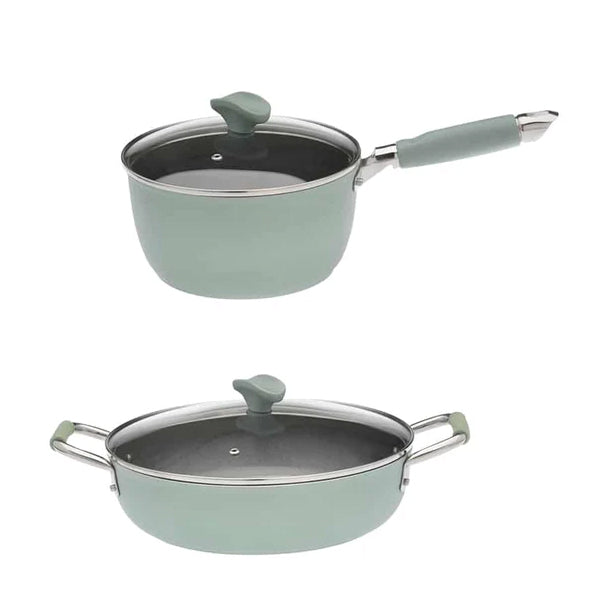 De Lucia voordeel pannenset (met maar liefst 13% voordeel!) bestaat uit twee populaire pannen met antiaanbaklaag, resp. de steelpan van 20 en de hapjespan van 28 cm in diameter met bijbehorende deksels. Uiteraard zijn de pannen voorzien van de ECOSHIELD coating zonder PTFE, PFOA en NIKKEL. Deze speciale coating maakt het mogelijk om de smaak van voedsel te verbeteren en het gebruik van oliën of vetten tijdens het koken te verminderen - 100% NIET-GIFTIG, zeer goed bestand tegen krassen, waardoor uitstekende prestaties worden gegarandeerd, zelfs bij hoge temperaturen. De harde coating wordt niet zacht onder invloed van hoge temperaturen, behoudt zijn slijtvastheid en geeft geen giftige dampen af. Deze koekenpannenset met gifvrije en duurzame pannen vormen het beste alternatief voor teflon antiaanbakpannen.