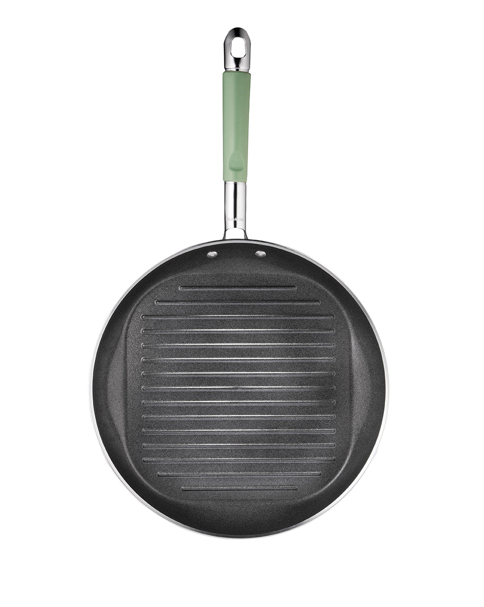 De robuuste EcoShield anti-aanbaklaag zorgt ervoor dat je ingrediënten niet aanbakken, zelfs zonder olie of boter. De ribbels in de pan geven die herkenbare grillstrepen én laten vet weglopen – ideaal voor vlees, vis en groenten. Bij gebruik van het mee te bestellen glazen deksel blijven warmte en sappen behouden: perfect voor langzaam garen.