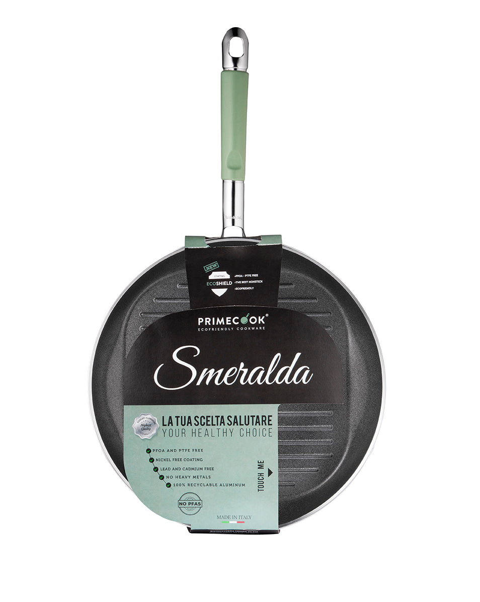 Ervaar het verschil met de Primecook ronde grillpan van 30 cm. Deze pan is ontworpen voor wie bewust wil koken: vetarm, smaakvol en volledig vrij van PFAS, PTFE, PFOA en andere schadelijke chemicaliën.