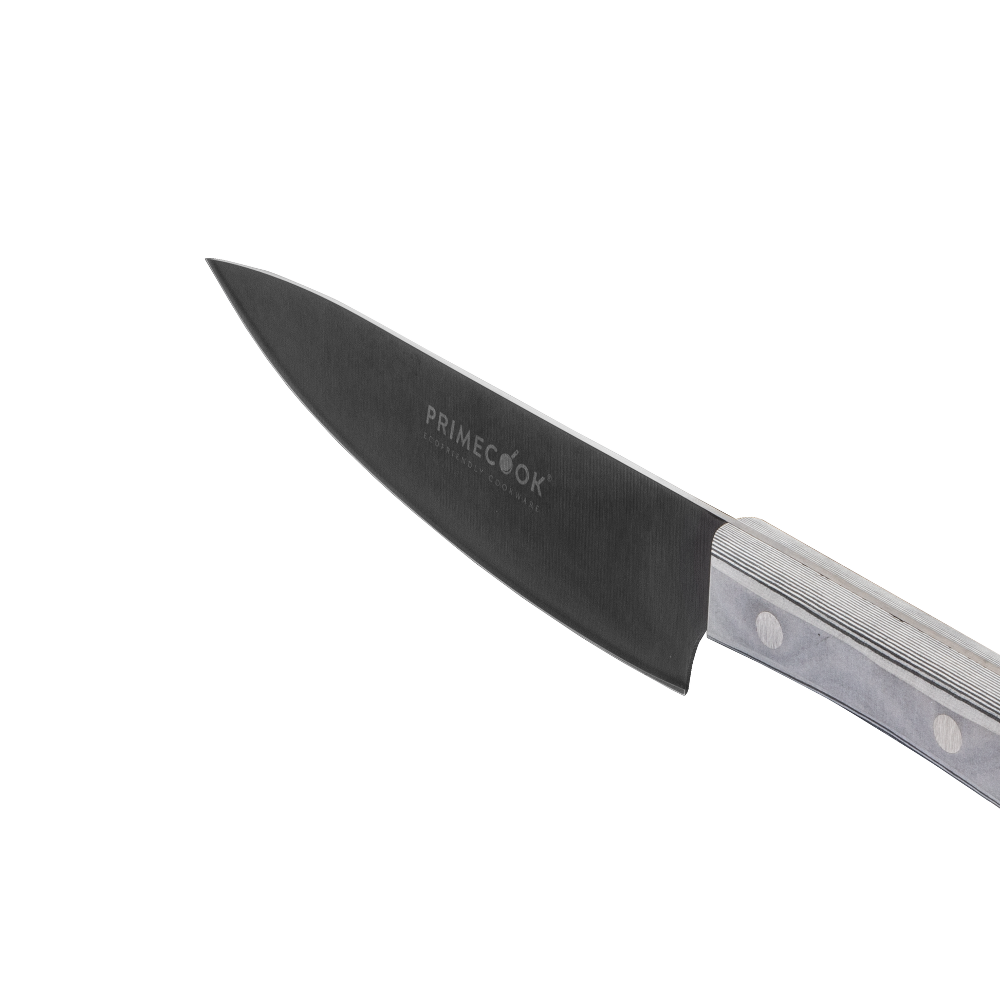 De keukenmessen uit de Anthracite line van Primecook zijn geschikt voor gebruik door de hobbykok, maar zeker ook in de professionele keuken. Een goed slijpbaar mes dat zeer lang mee gaat.