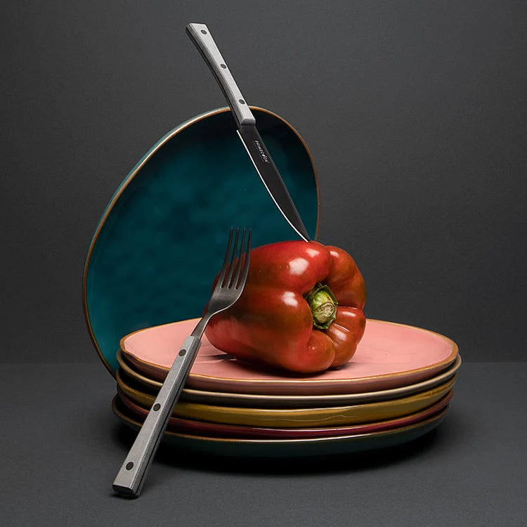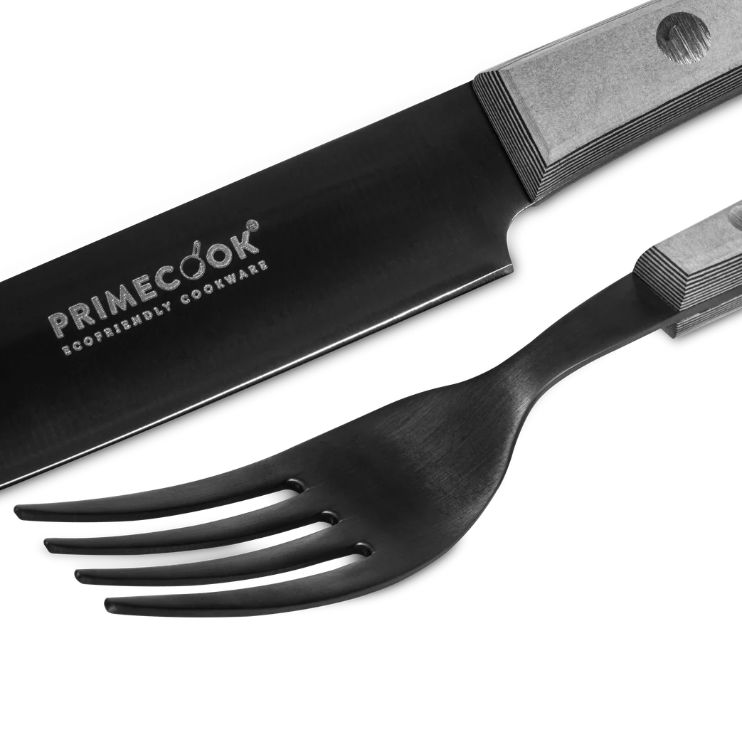 Set van vork en scherp mes 13 cm voor professioneel en huishoudelijk gebruik in zeer hoogwaardig roestvrij staal. Ideaal voor nauwkeurig snijden, ook van plakken, het mes is handgemaakt in Italië en uitgerust met een Paperstone®-handvat, een ecologisch materiaal samengesteld uit natuurlijke harsen, papier en gerecycled karton voor gegarandeerd duurzame weerstand, hygiëne, niet-giftigheid en gemakkelijke reiniging. Het blad is gecoat met een speciale TITAN-ECOSHIELD beschermlaag, een eigenschap die de snijkant tijdens gebruik een grotere weerstand, oppervlaktehardheid, corrosieweerstand, hypoallergeniciteit en gemakkelijk snijden geeft. NSF-gecertificeerd artikel.